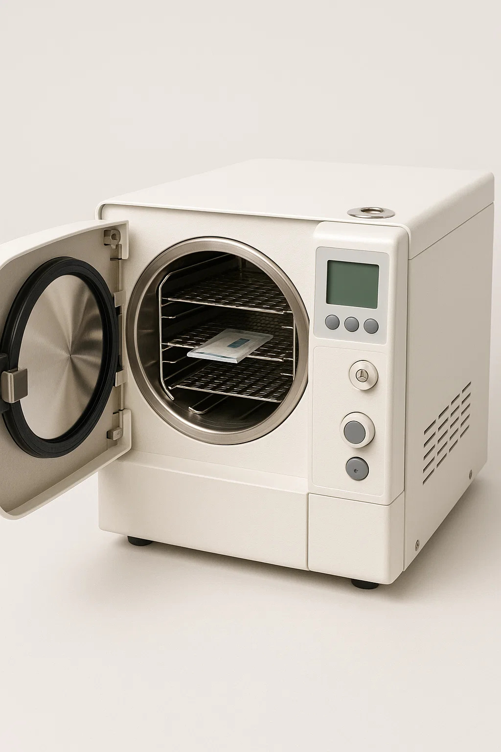 Yeniden kullanılabilen dişçilik aletlerini yüksek basınçlı doymuş buhar kullanarak sterilize eden özel bir tıbbi cihaz.