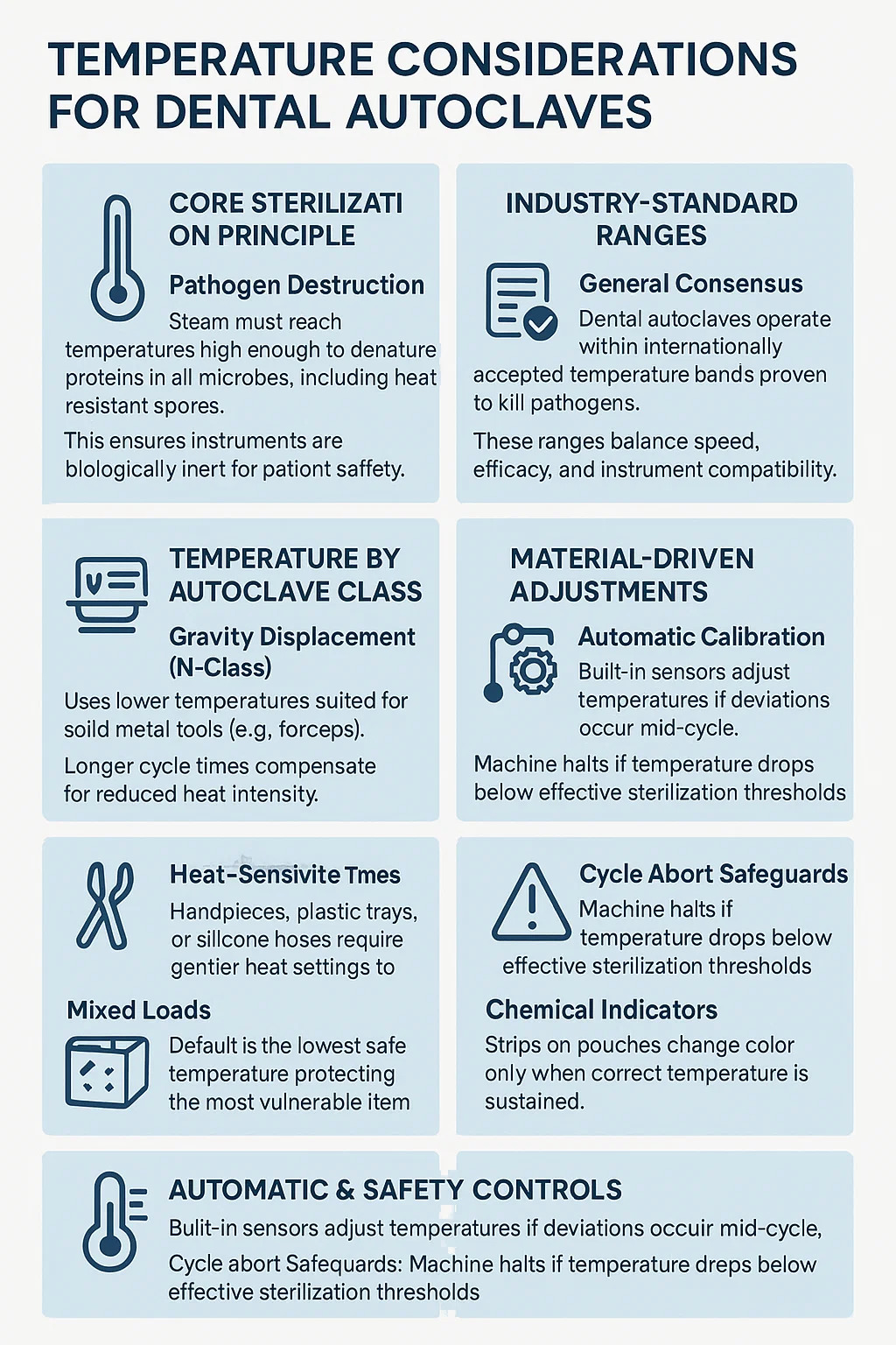 İşte sıcaklıkla ilgili hususların bir dökümü: diş otoklavları :